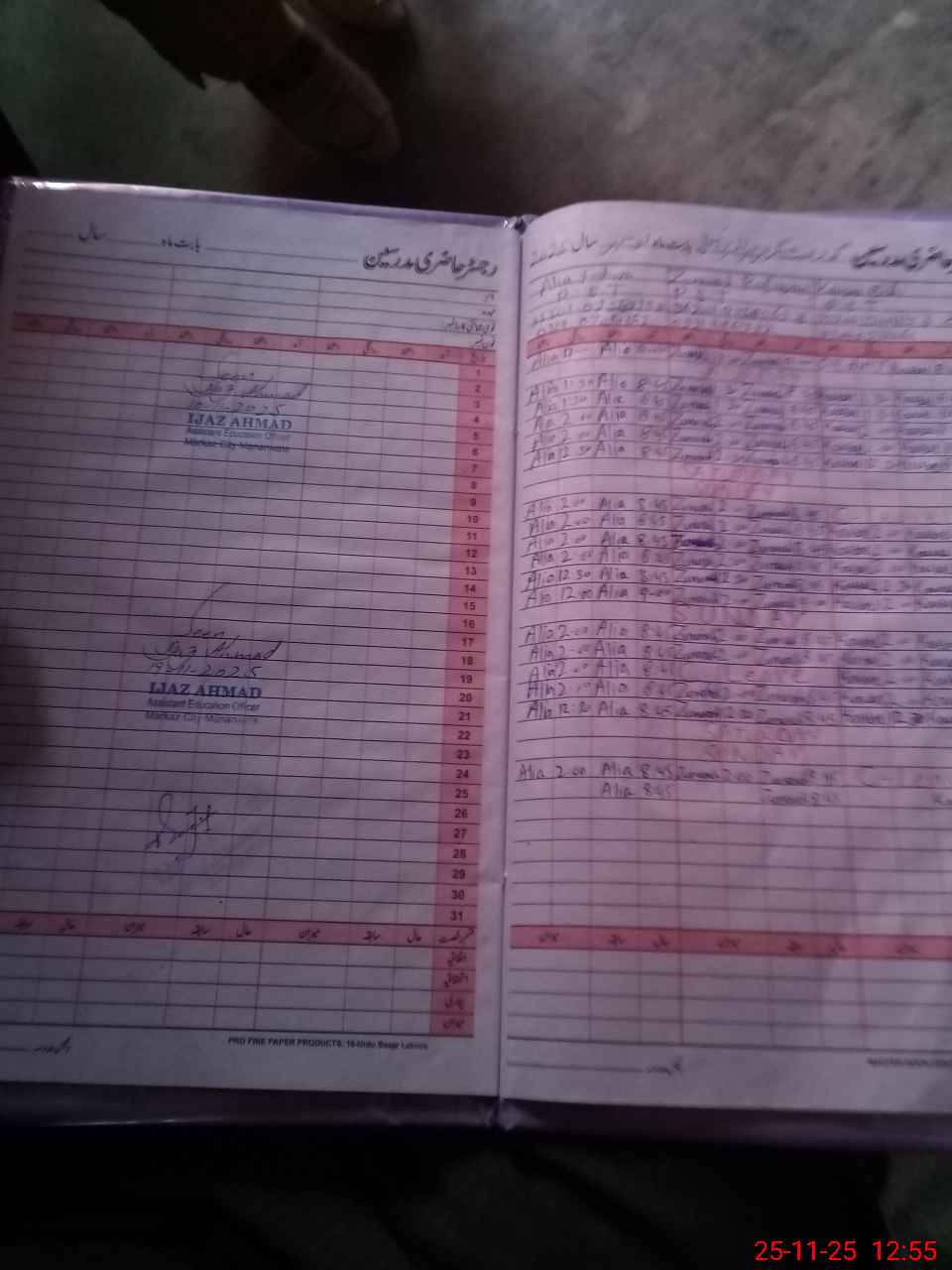 | CNIC | Full Name | Designation | R/C | Absence During Last Calender Month |