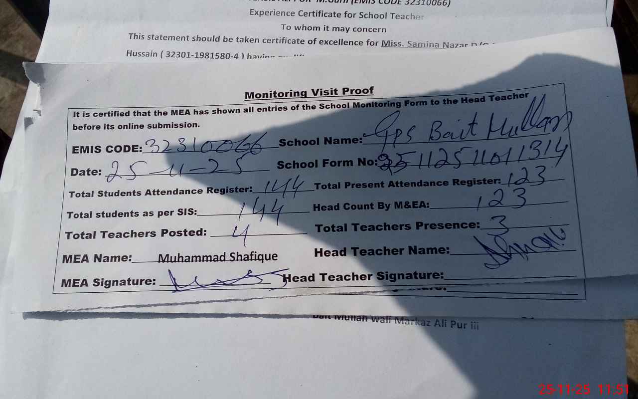 | EMIS Code: 32310066 | Name of School: GPS BAIT MULLAN WALI | |||