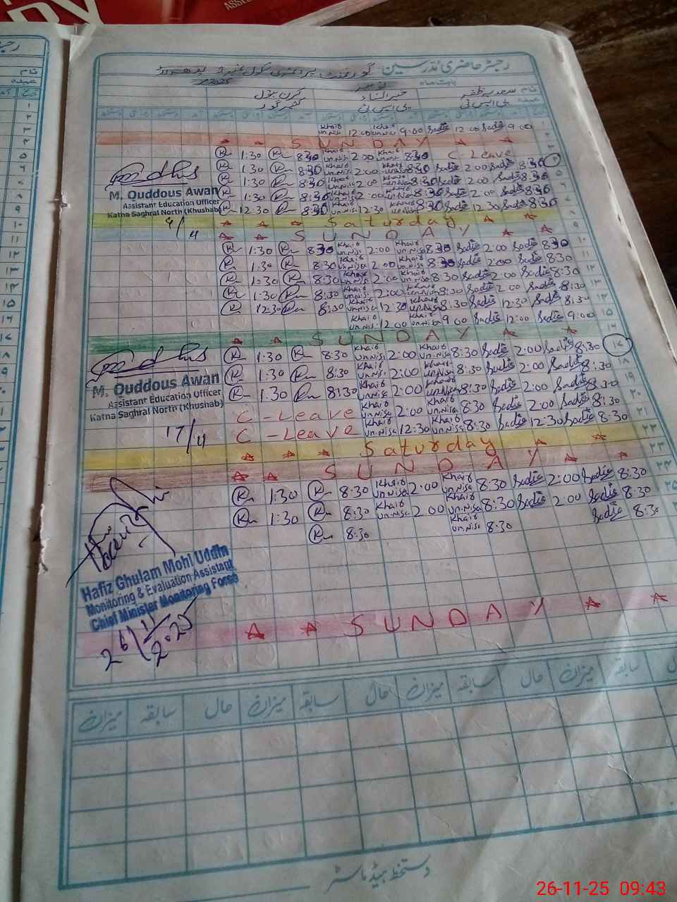 | CNIC | Full Name | Designation | R/C | Absence During Last Calender Month |