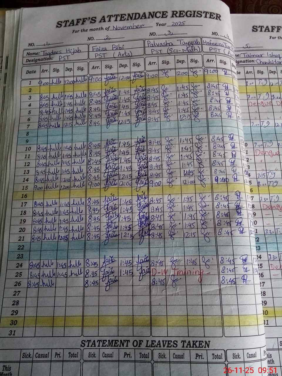 | Leave | Duty | Absent | Maternity | Medical | Ex- Pak |