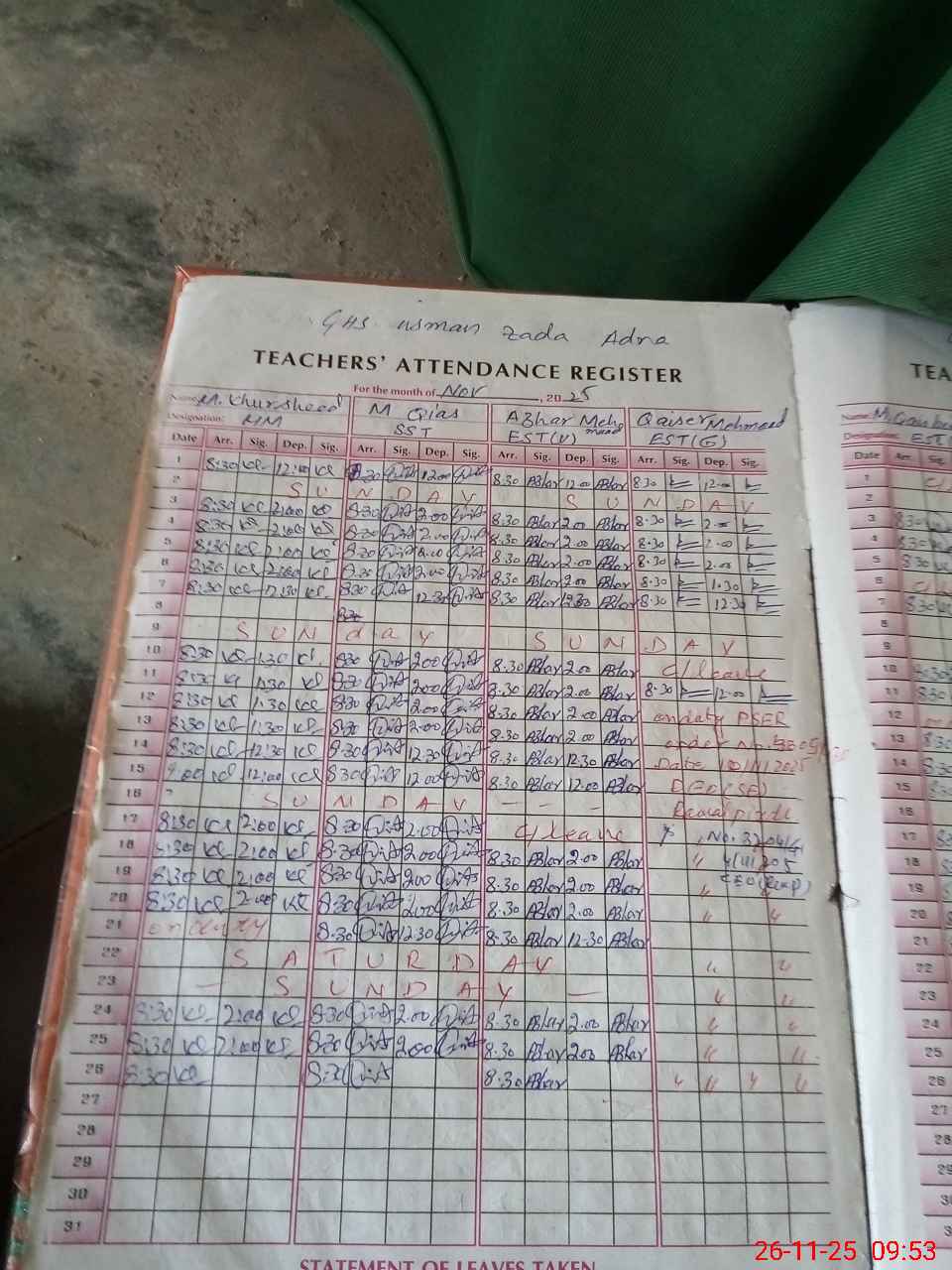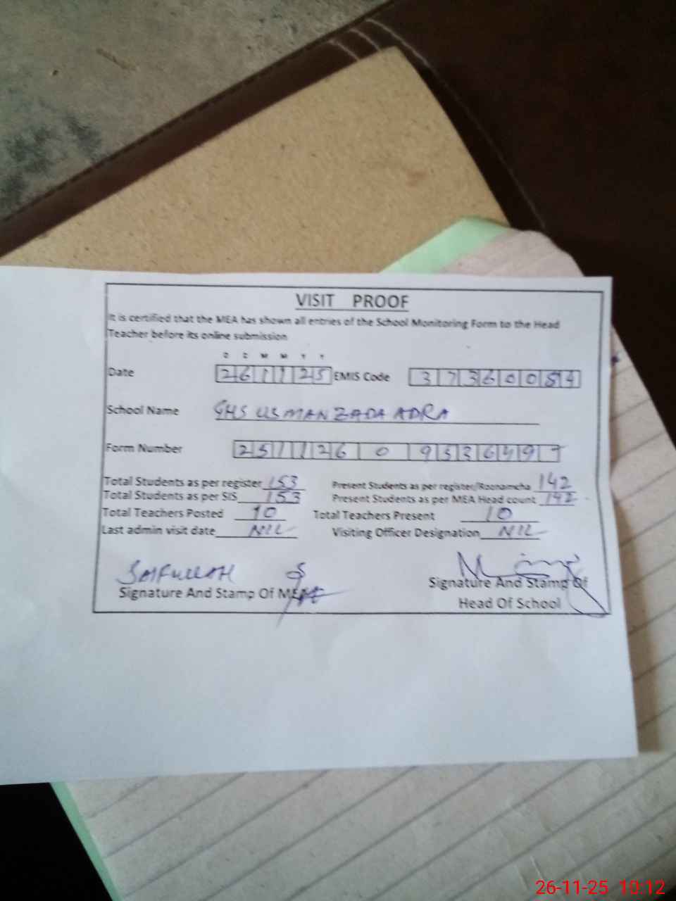 | EMIS Code: 37360084 | Name of School: GHS USMAN ZADA ADRAH | |||