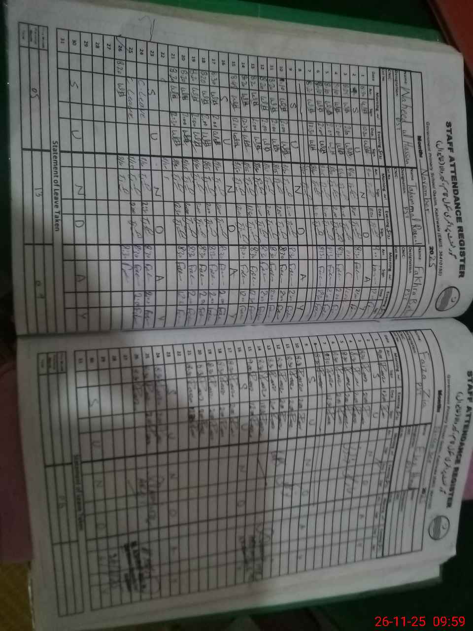 | CNIC | Full Name | Designation | R/C | Absence During Last Calender Month |