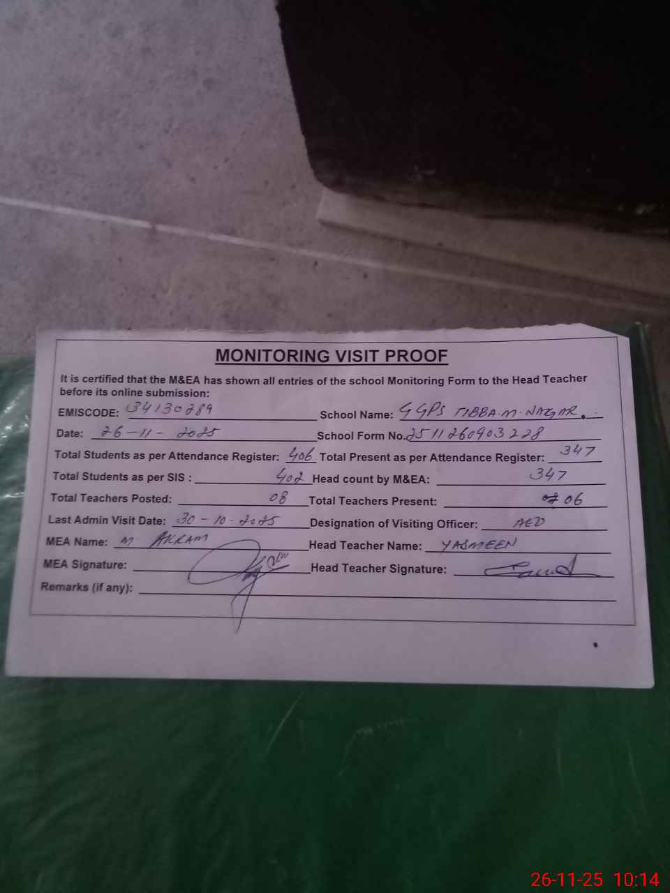 | EMIS Code: 34130289 | Name of School: GGPS TIBBA MUHAMMAD NAGAR | |||