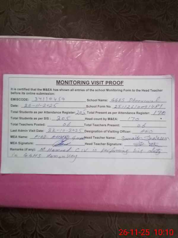 | EMIS Code: 34110459 | Name of School: GGES DHEERI WAL | |||