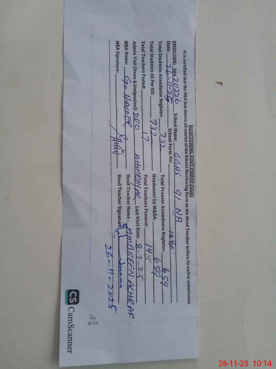 | Certified that this School was Inspected by the Undersigned MEA/DMO Today and the Information Stated Above is as Per Record. | |||||