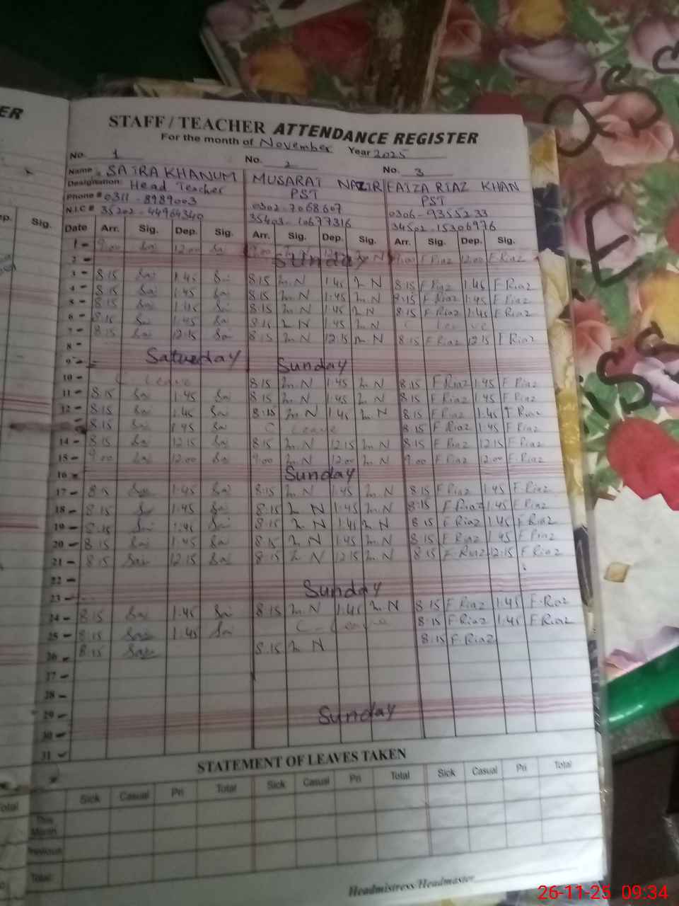 | Name: Sa**** Kh**** Designation: (School Headmaster's/Headmistress's) Head Mistress Phone/Cell Number: 03**** |