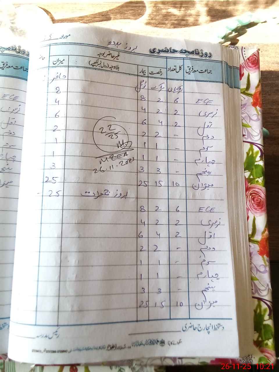 | CNIC | Full Name | Designation | R/C | Absence during last cal. month |