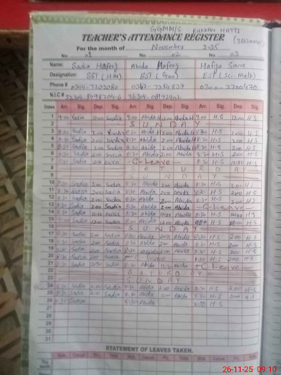 | Name: SA**** HA**** Designation: (School Headmaster's/Headmistress's) HEADMISSTRESS Phone/Cell Number: 03**** |