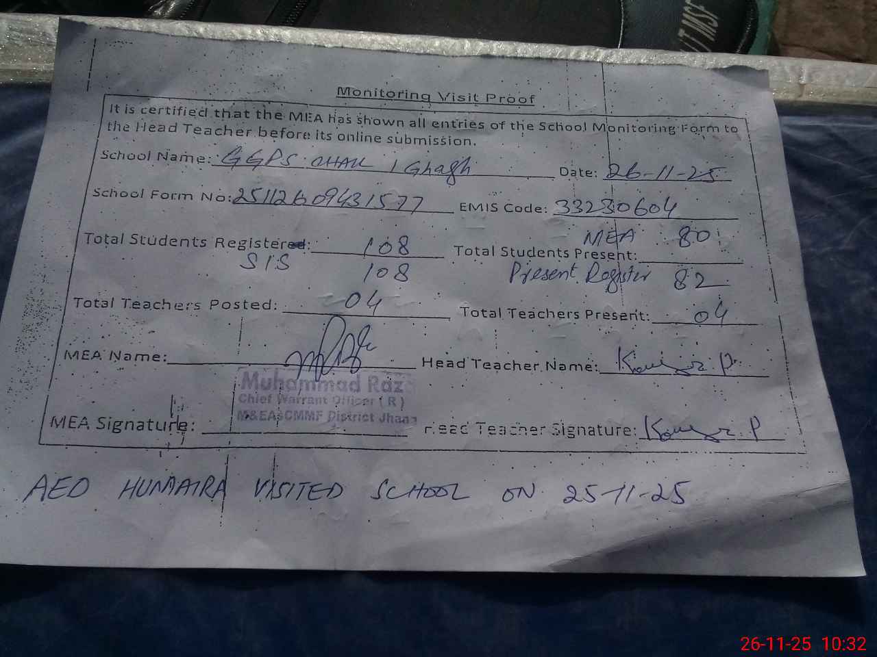 | EMIS Code: 33230604 | Name of School: GGPS CHAK NO. 1 GHAGH | |||