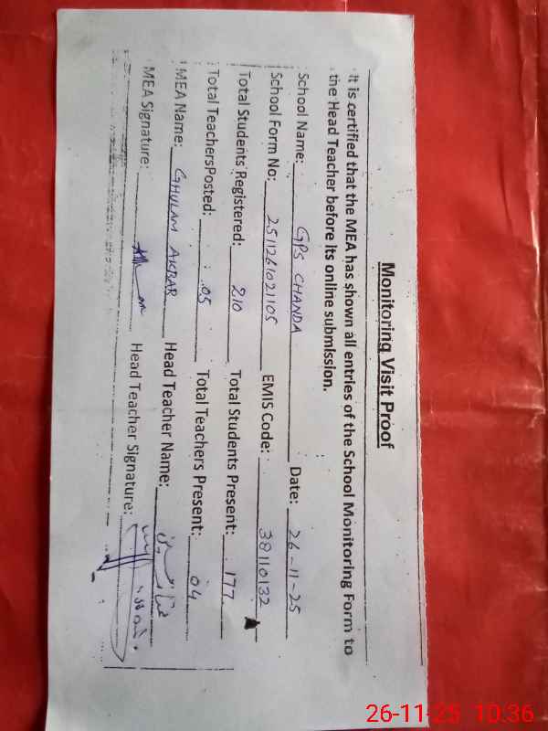 | EMIS Code: 38110132 | Name of School: GPS CHANDA | |||