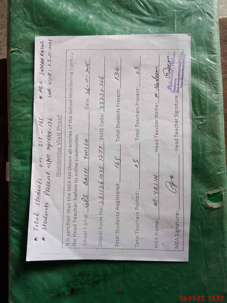 | EMIS Code: 33230306 | Name of School: GPS BASTI YOUSAFA | |||