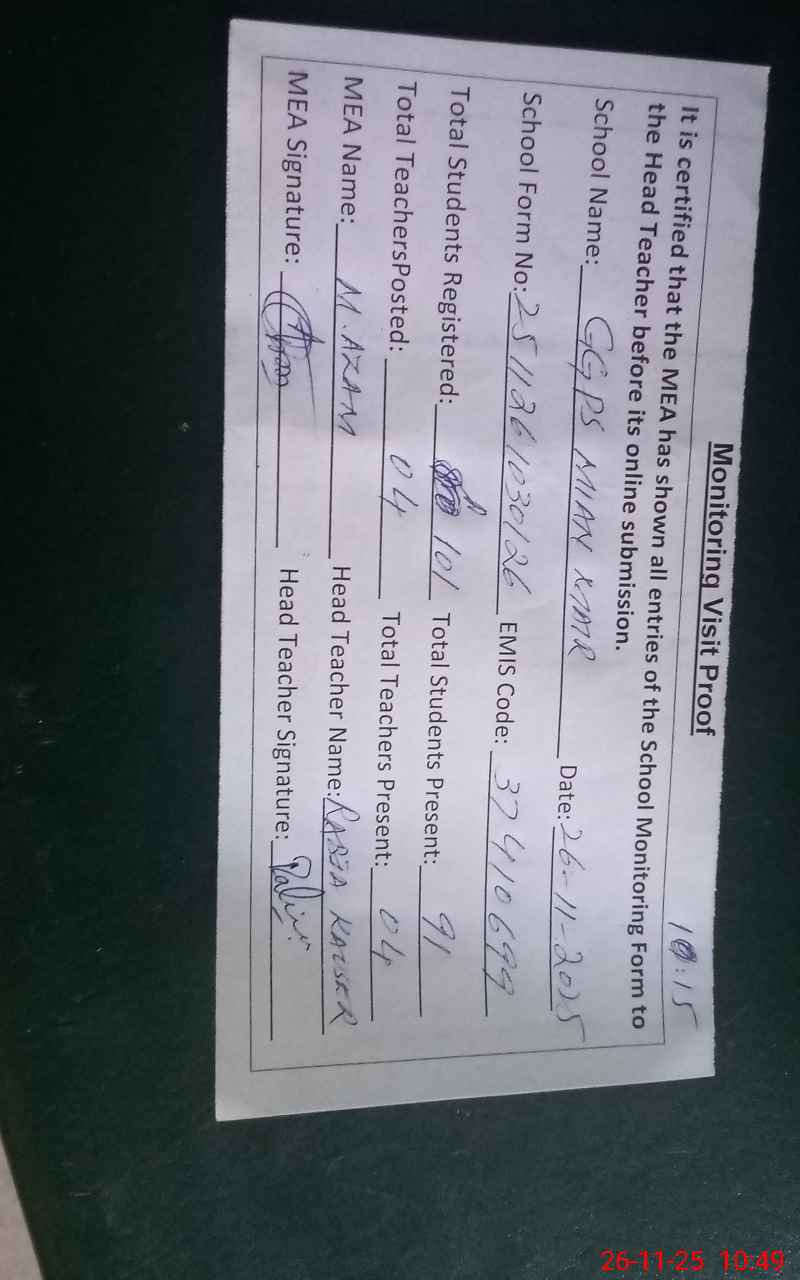 | EMIS Code: 37410699 | Name of School: GGPS MIAN MAIR | |||
