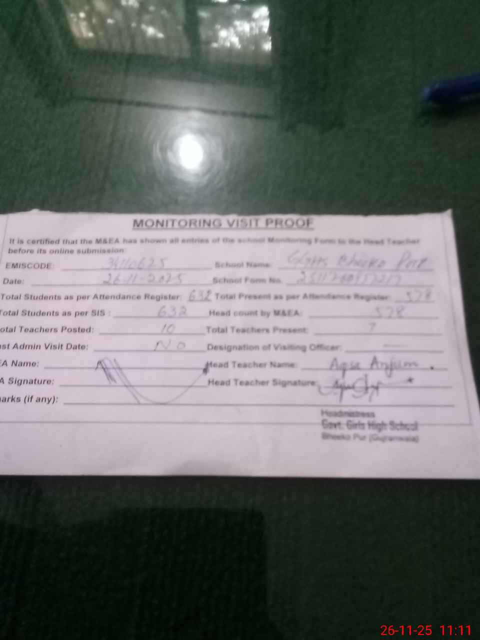 | EMIS Code: 34110625 | Name of School: GGHS BHEEKHO PUR (FATTOMAND) | |||