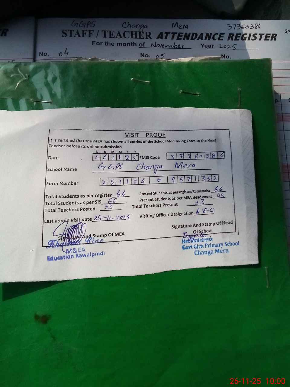 | EMIS Code: 37360386 | Name of School: GGPS CHANGA MERA | |||