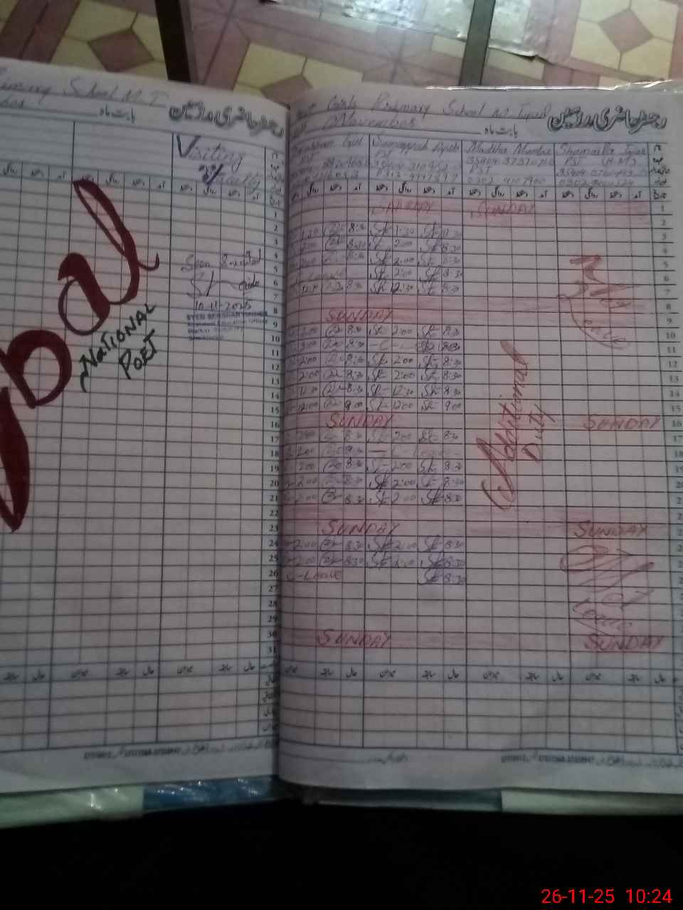 | CNIC | Full Name | Designation | R/C | Absence During Last Calender Month |