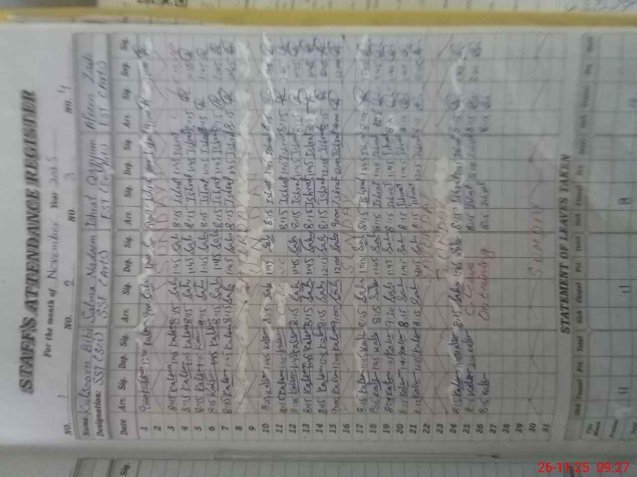 | CNIC | Full Name | Designation | R/C | Absence During Last Calender Month |