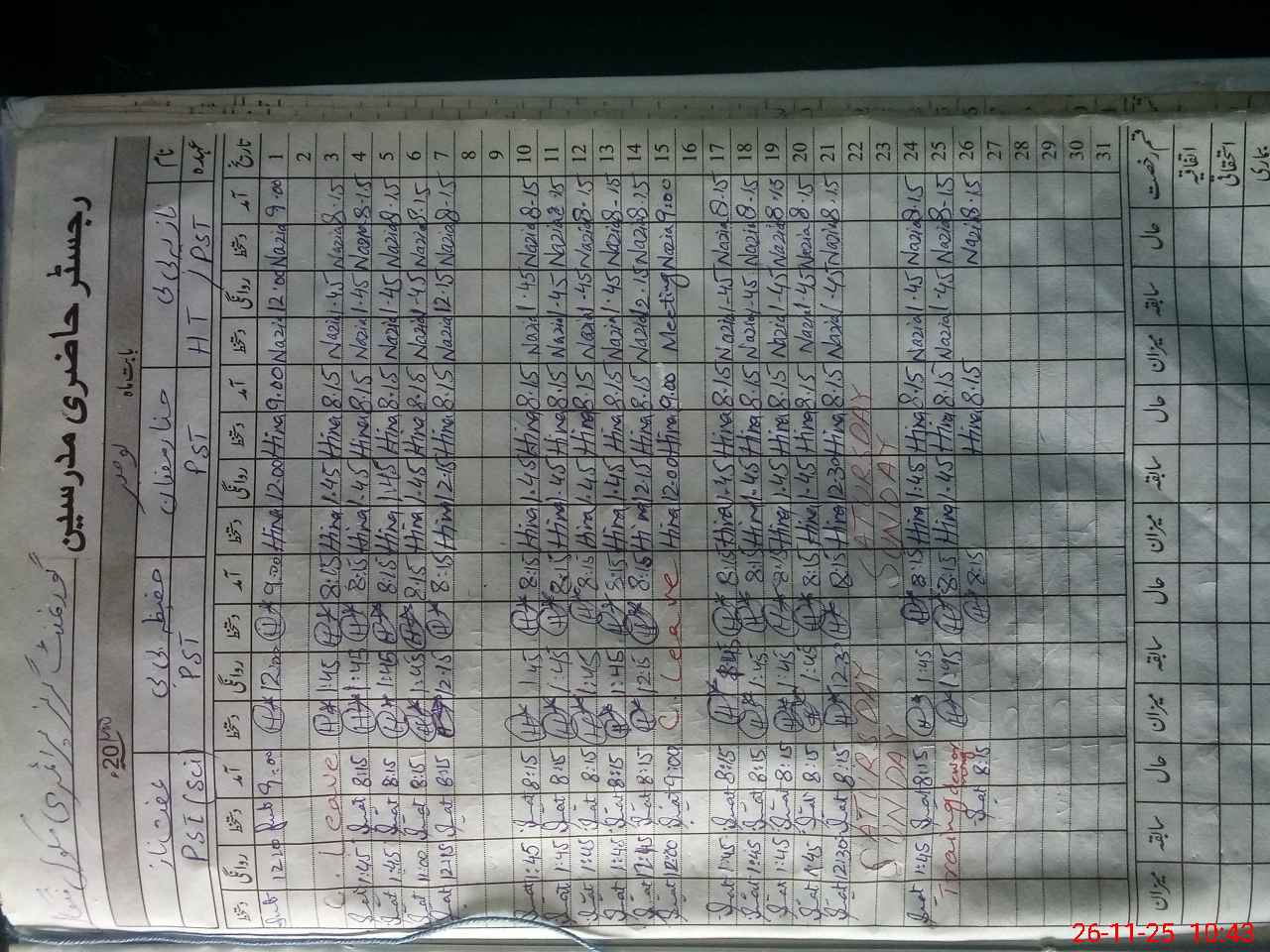 | CNIC | Full Name | Designation | R/C | Absence During Last Calender Month |