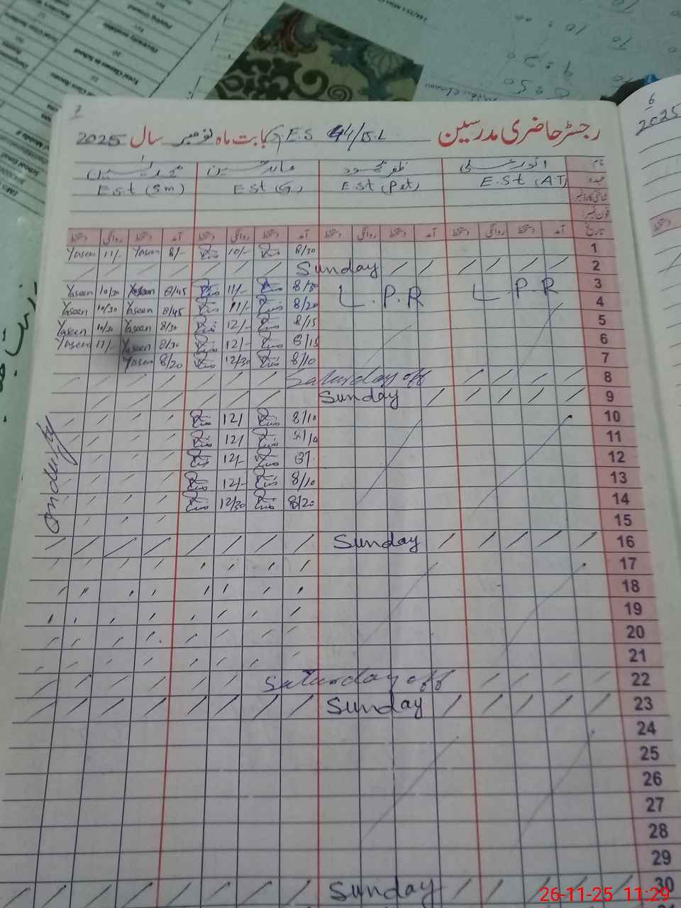| CNIC | Full Name | Designation | R/C | Absence During Last Calender Month |
