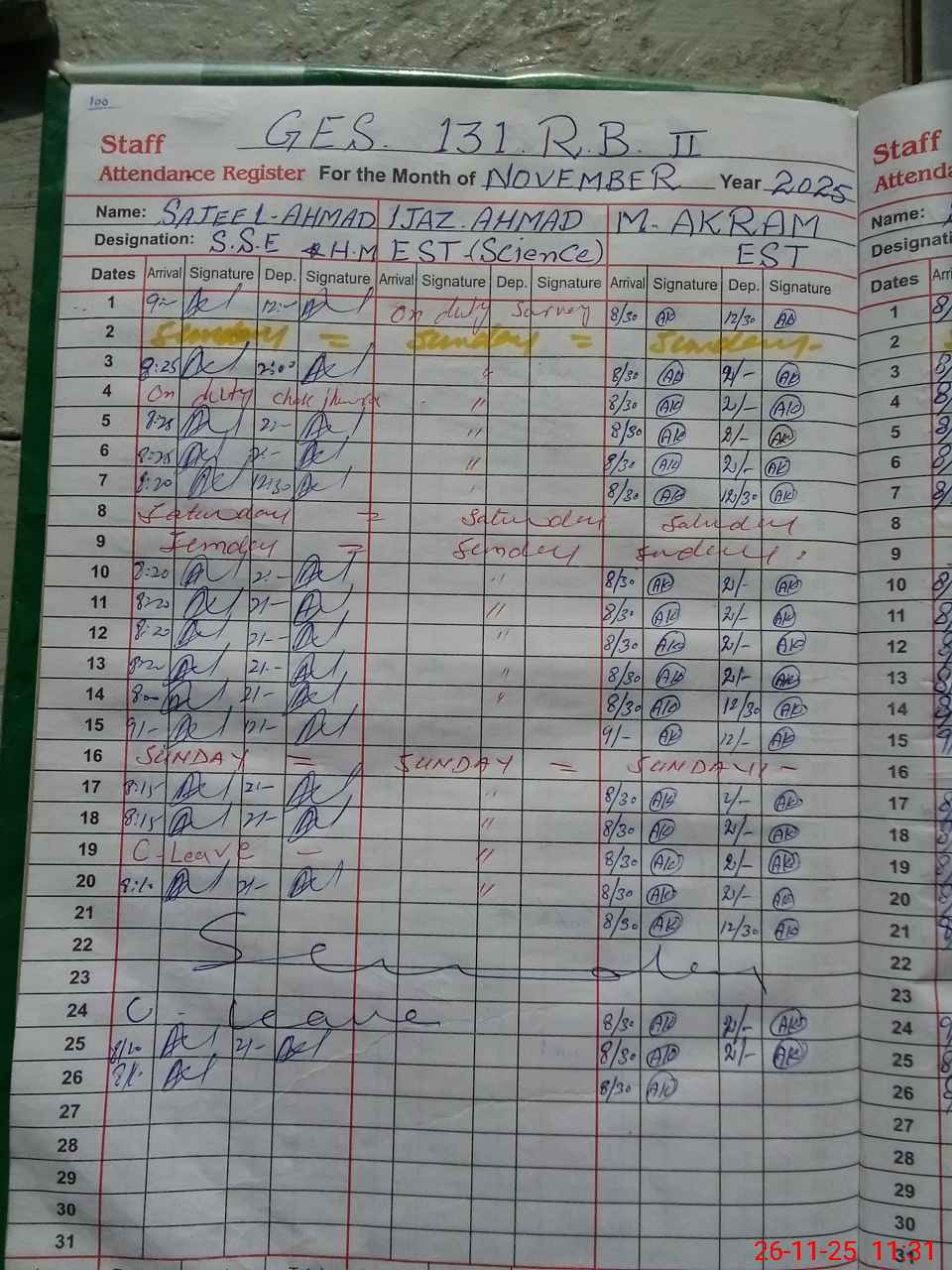 | Monitoring Date: 26-11-2025 | Start Time: 26-11-2025 10:42 AM | End Time: 26-11-2025 11:34 AM | Name of MEA: MU**** SH**** MU**** | |