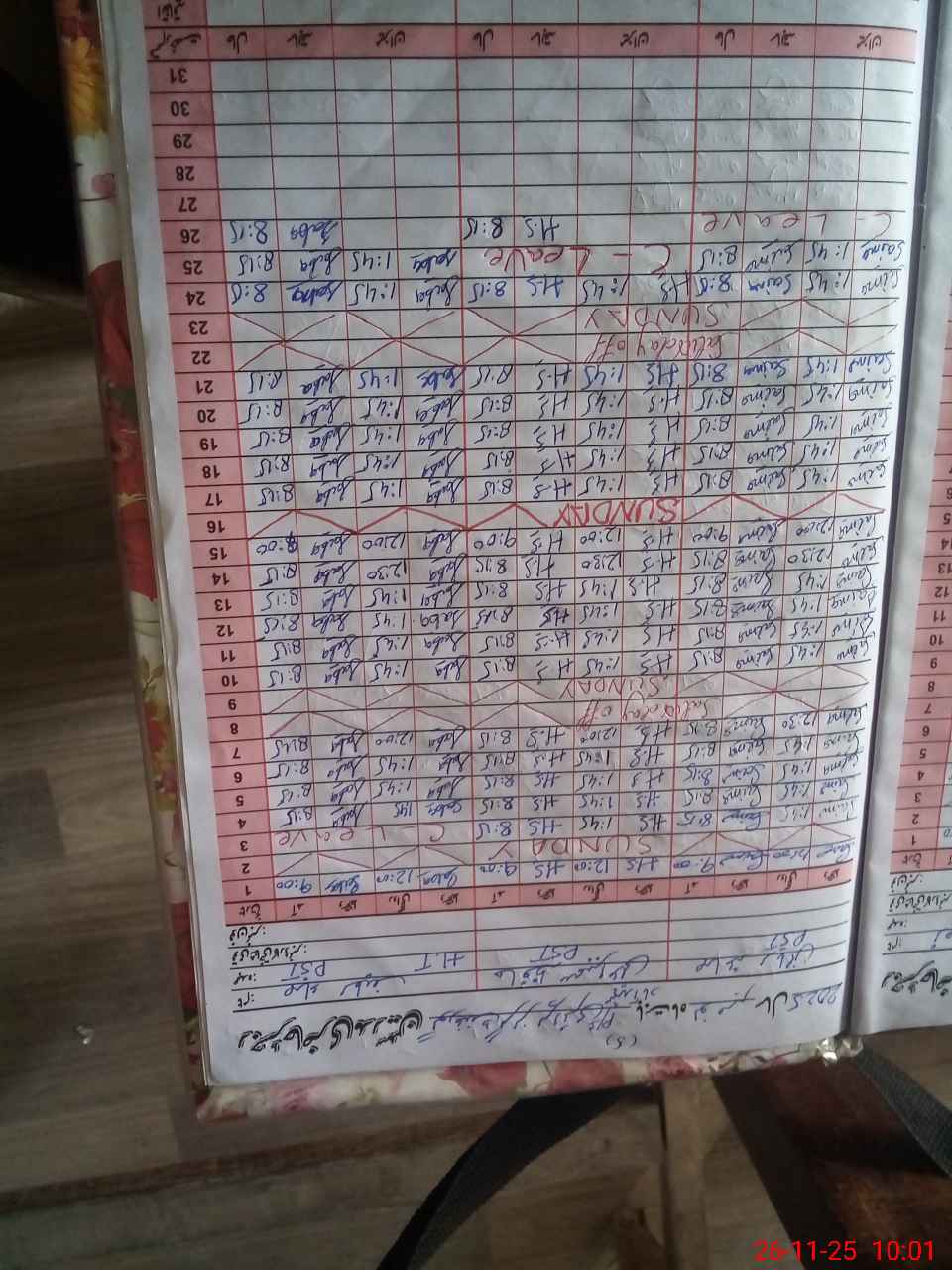 | Leave | Duty | Absent | Maternity | Medical | Ex- Pak |