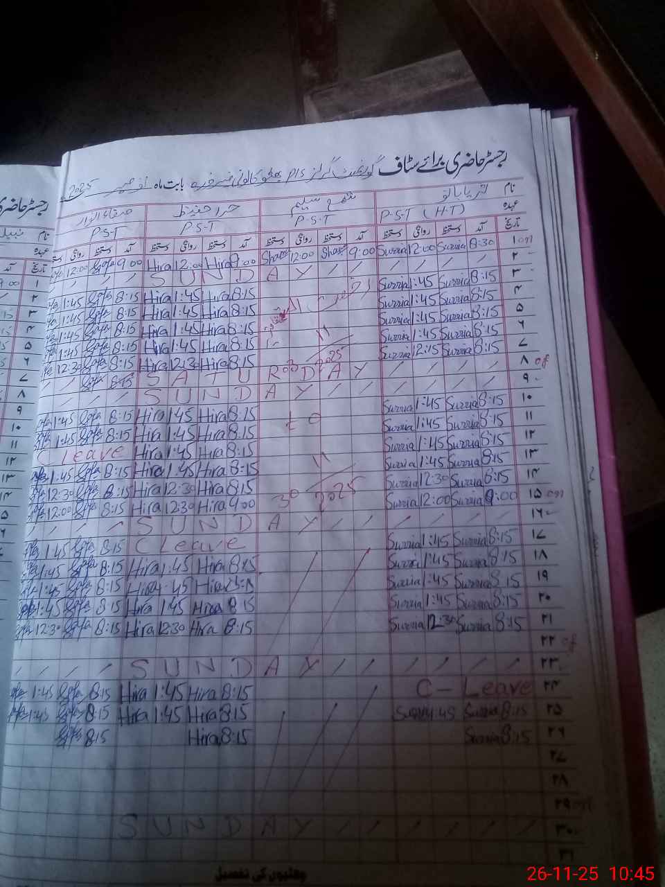 | Leave | Duty | Absent | Maternity | Medical | Ex- Pak |