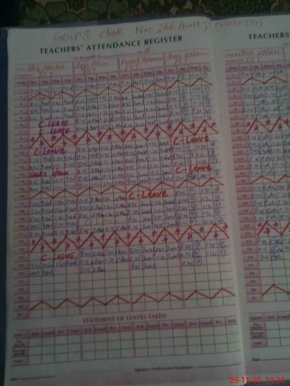 | Leave | Duty | Absent | Maternity | Medical | Ex- Pak |