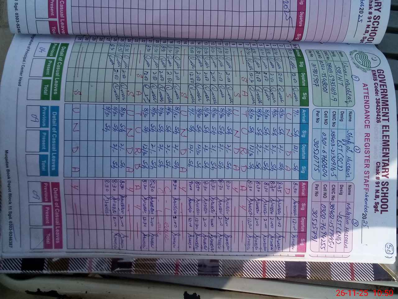 | Name: UM**** MU**** Designation: (School Headmaster's/Headmistress's) SSE (ENGLISH) Phone/Cell Number: 03**** |