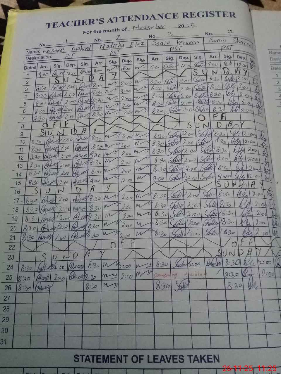 | Leave | Duty | Absent | Maternity | Medical | Ex- Pak |