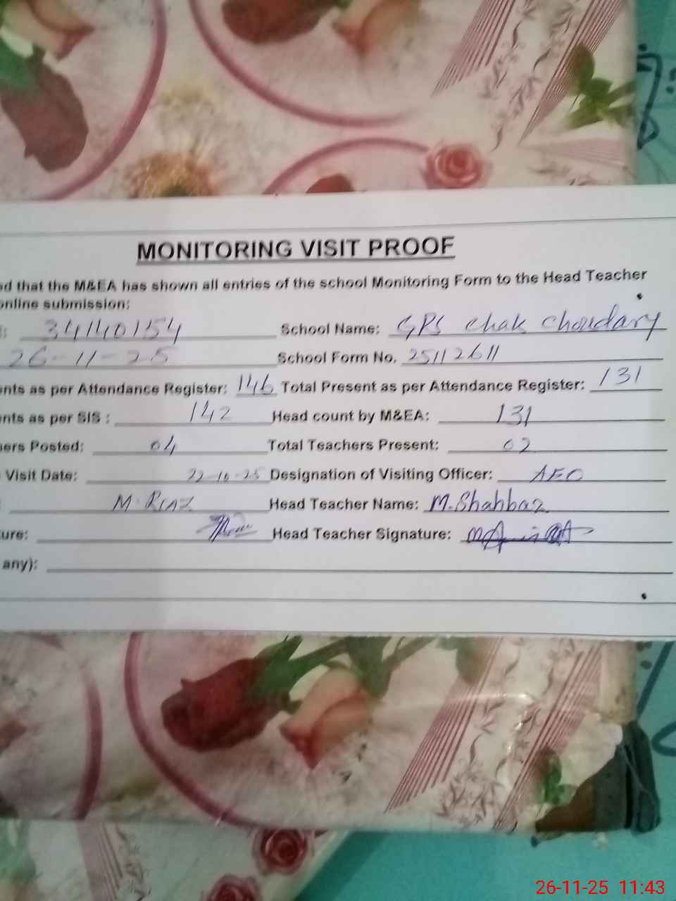 | EMIS Code: 34140154 | Name of School: GPS CHAK CHAUDHARY | |||