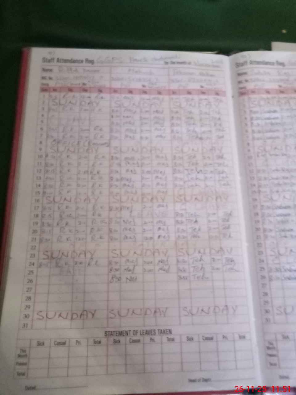 | Leave | Duty | Absent | Maternity | Medical | Ex- Pak |