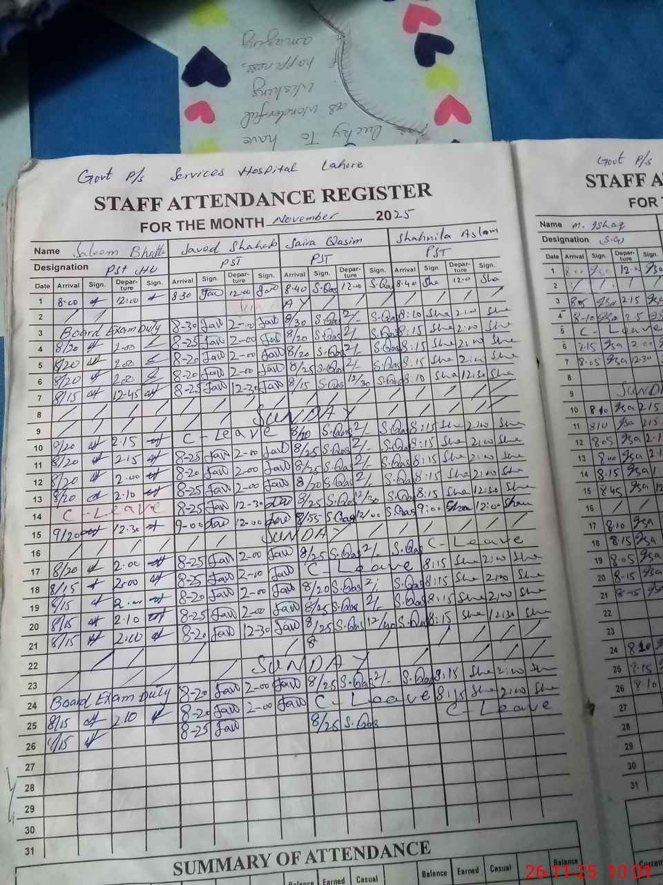 | Leave | Duty | Absent | Maternity | Medical | Ex- Pak |