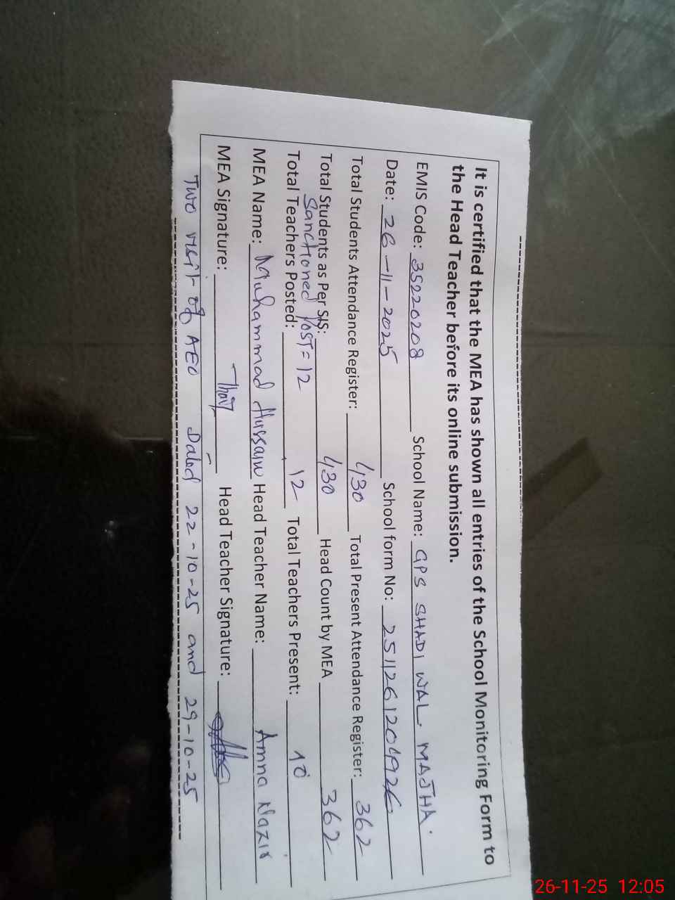 | EMIS Code: 35220208 | Name of School: GPS SHADAWAL MAJHA | |||