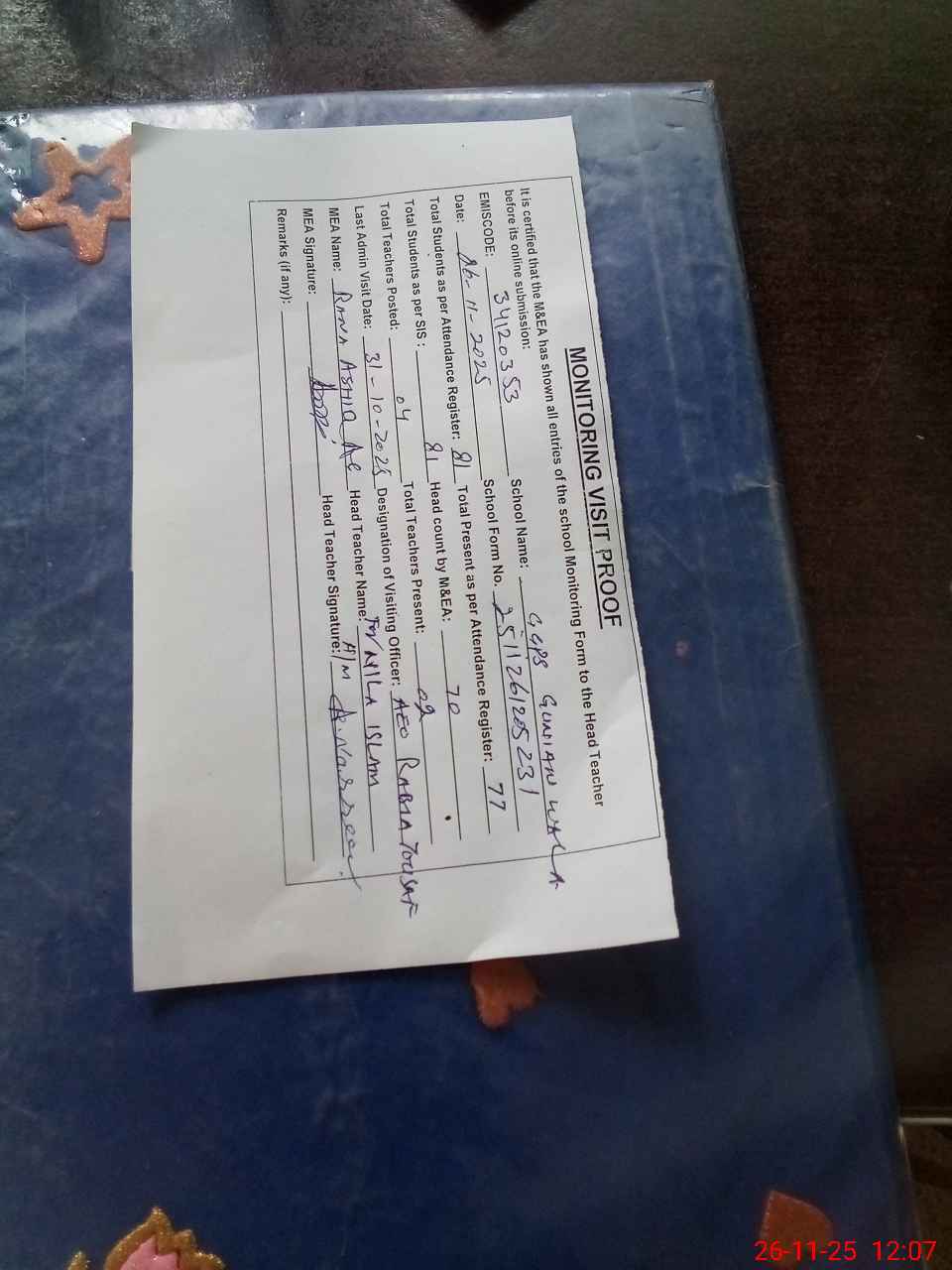 | EMIS Code: 34120353 | Name of School: GGPS GUNIAN WALA | |||