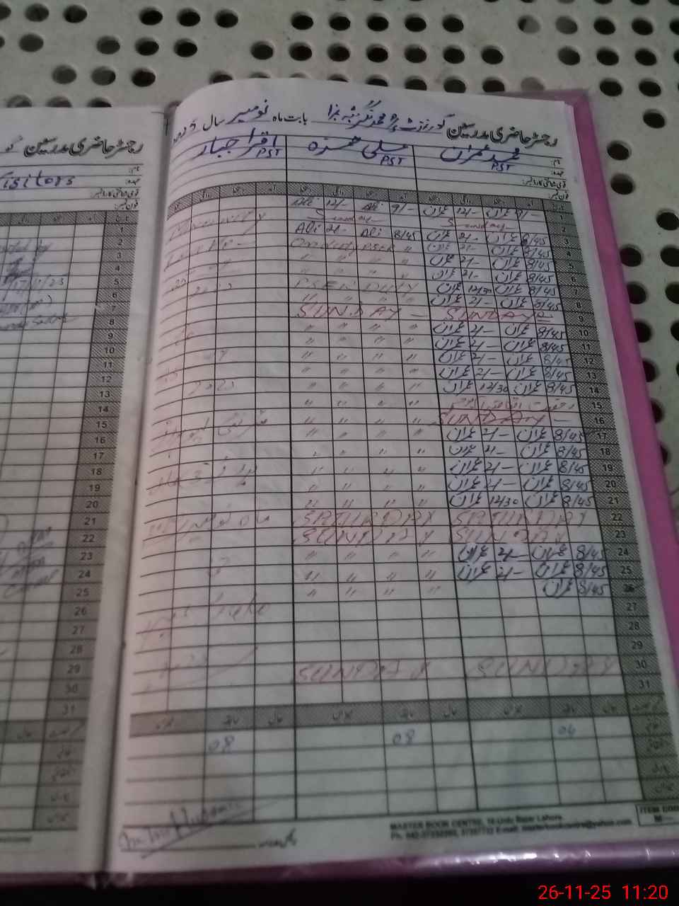 | CNIC | Full Name | Designation | R/C | Absence During Last Calender Month |