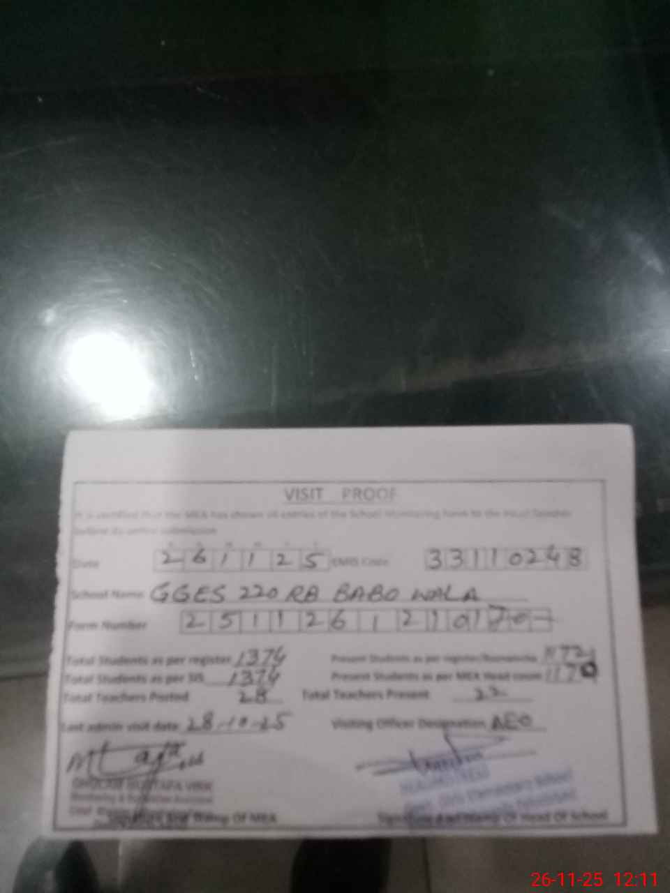 | Attendance Register | Head Teacher | MEA with School | Visit Proof |