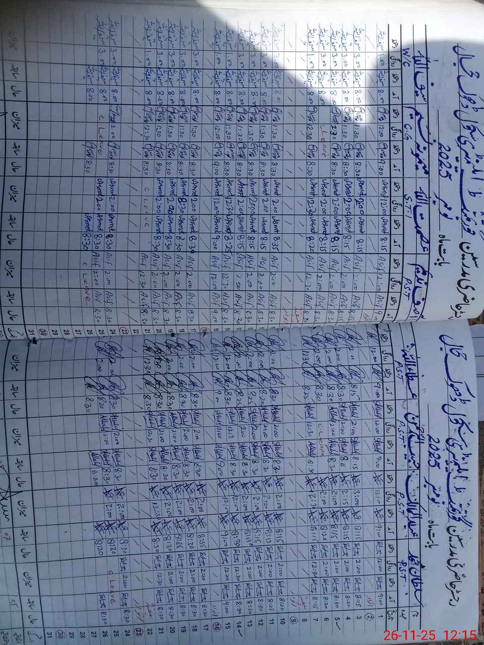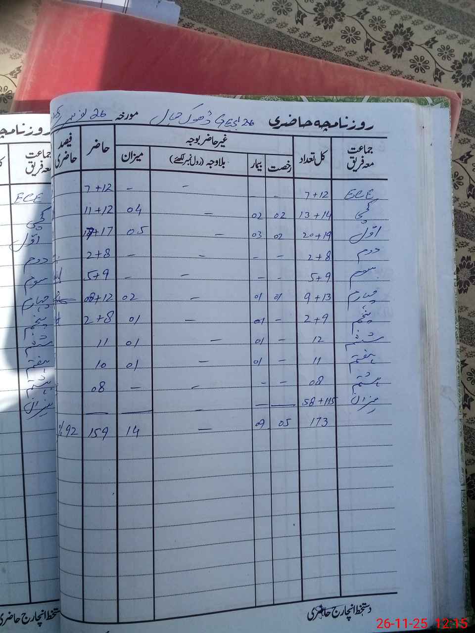 | CNIC | Full Name | Designation | R/C | Absence During Last Calender Month |