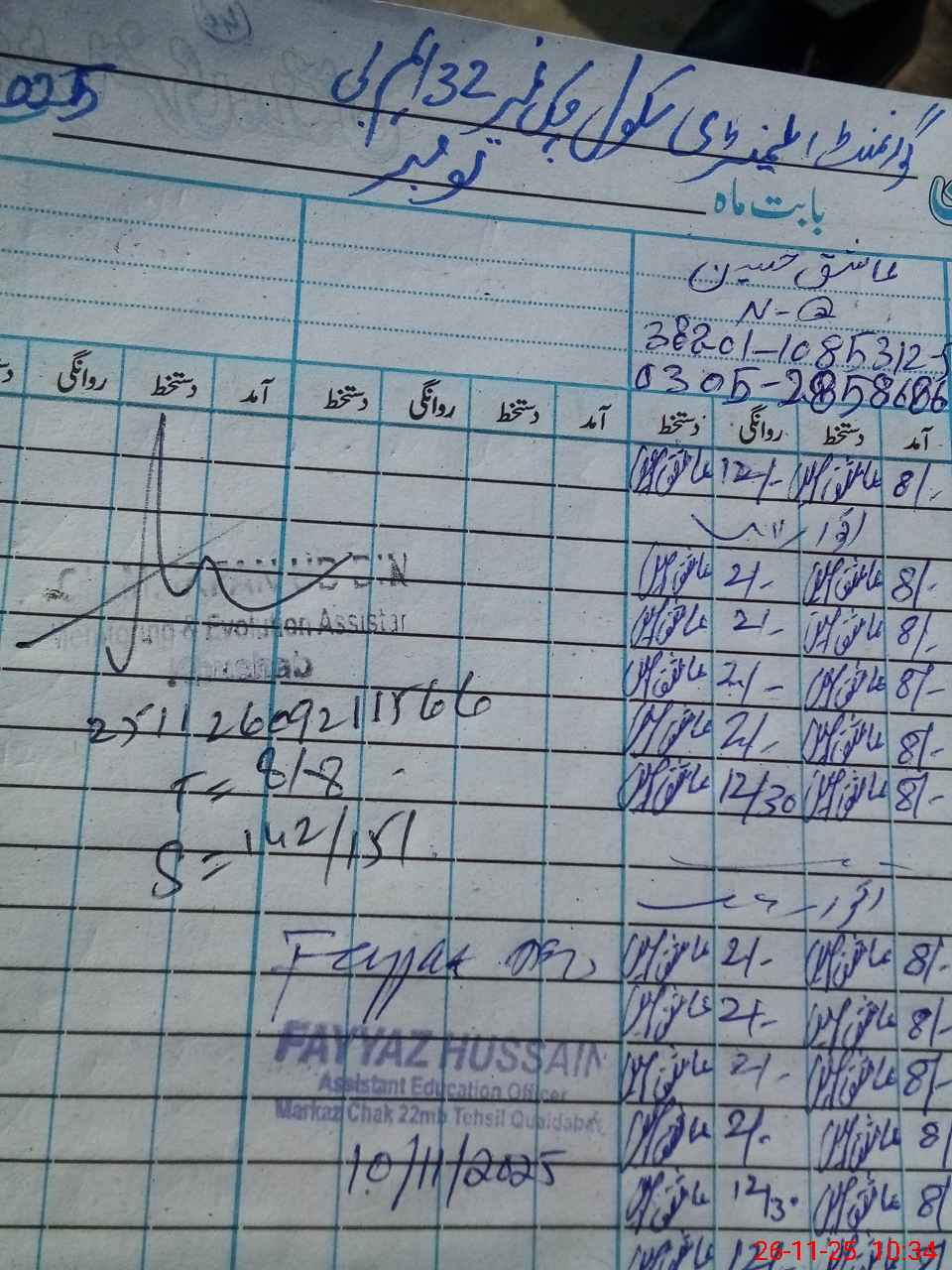 | Remarks (Use Separate Page if Required): GES 32 mb student on sis 151 student on register 151 head count 142 no teacher absent one on lpr last visit Faiz 20 Oct no missing facilities | |||||