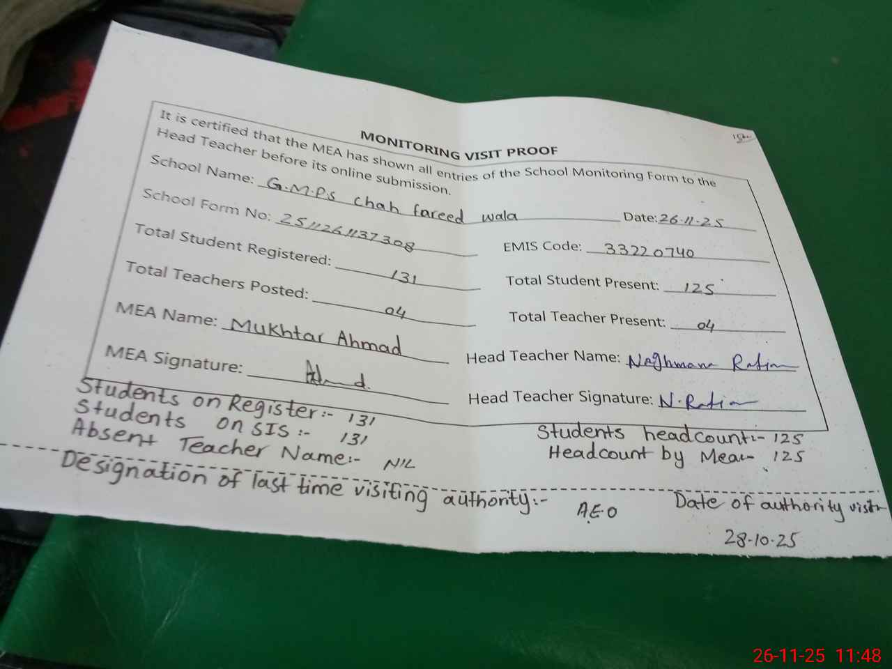 | EMIS Code: 33220740 | Name of School: GMPS CHAH FAREED WALA | |||