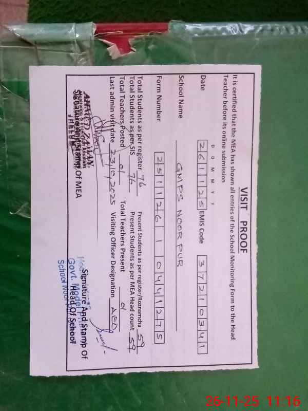 | EMIS Code: 37210341 | Name of School: GMPS NOOR PUR | |||