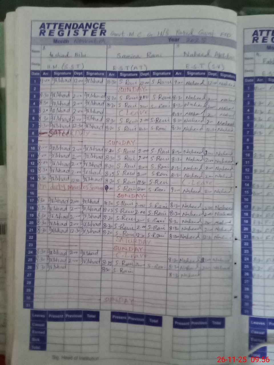 | Leave | Duty | Absent | Maternity | Medical | Ex- Pak |