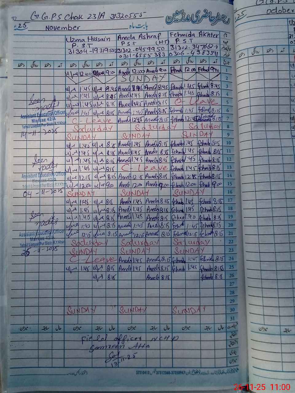 | Name: An**** As**** Designation: (School Headmaster's/Headmistress's) PST Phone/Cell Number: 03**** |