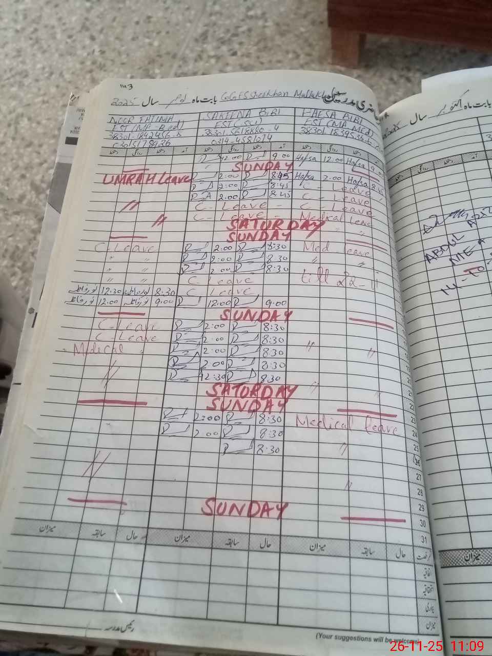 | Leave | Duty | Absent | Maternity | Medical | Ex- Pak |