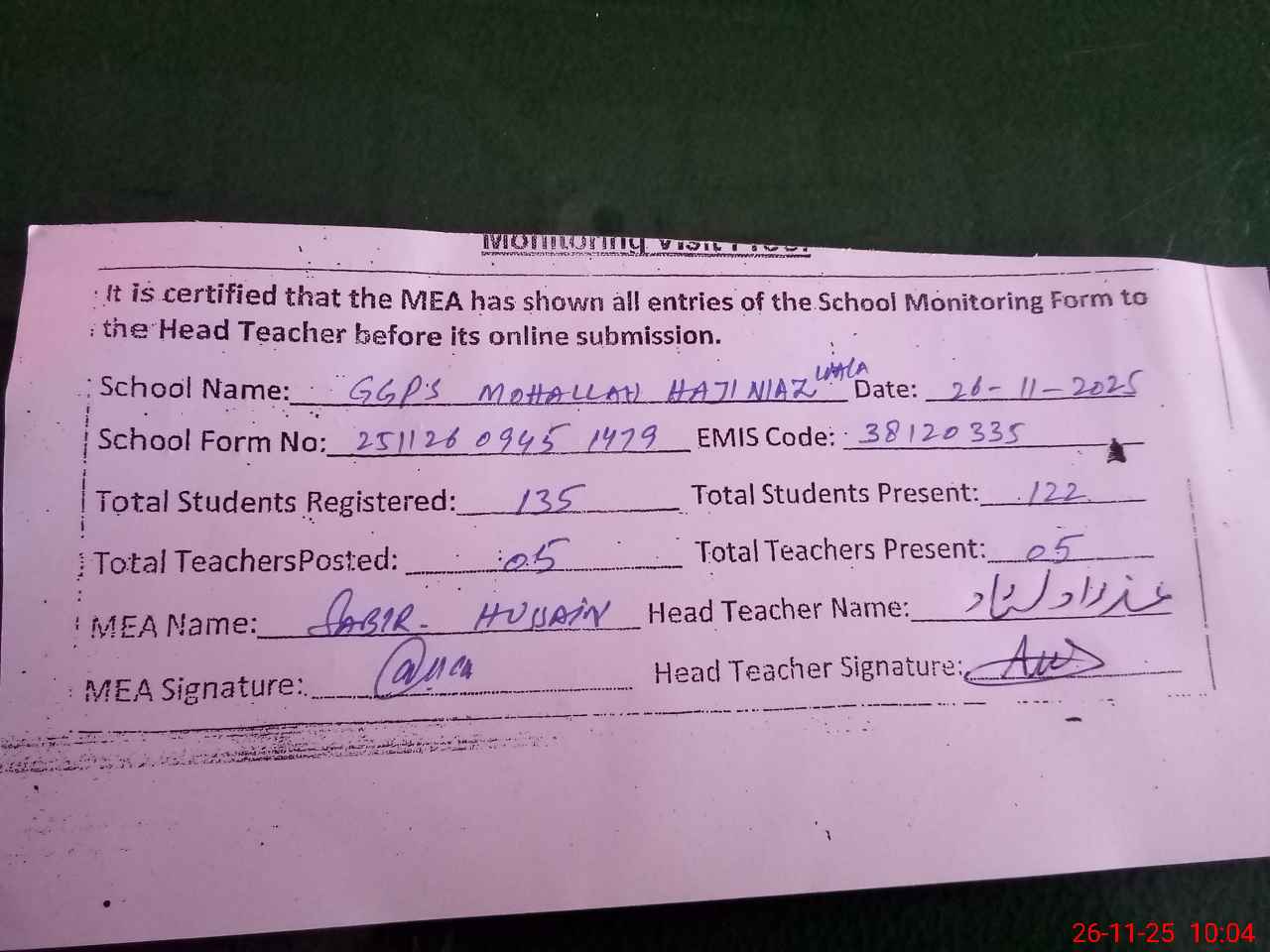 | EMIS Code: 38120335 | Name of School: GGPS MOHALLAH HAJI NIAZ WALA | |||