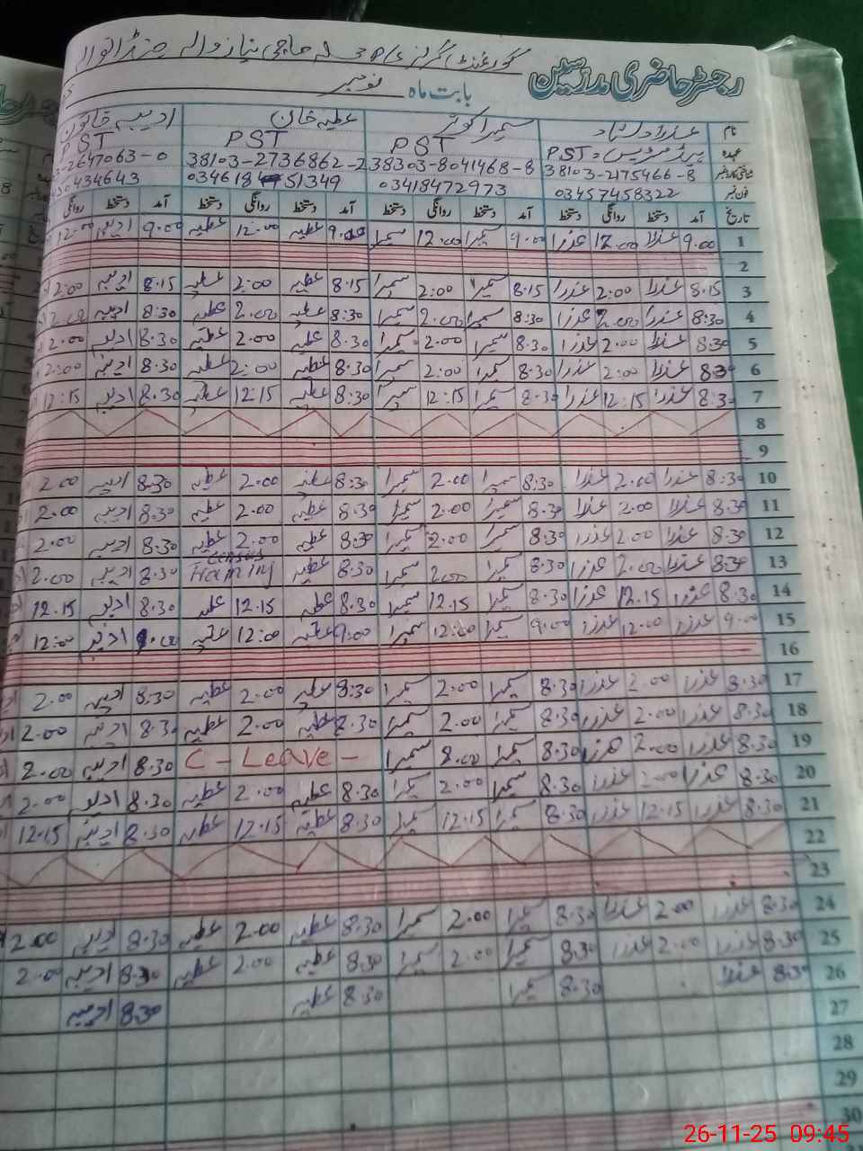 | Name: AZ**** DI**** Designation: (School Headmaster's/Headmistress's) PTC/JV Phone/Cell Number: 03**** |