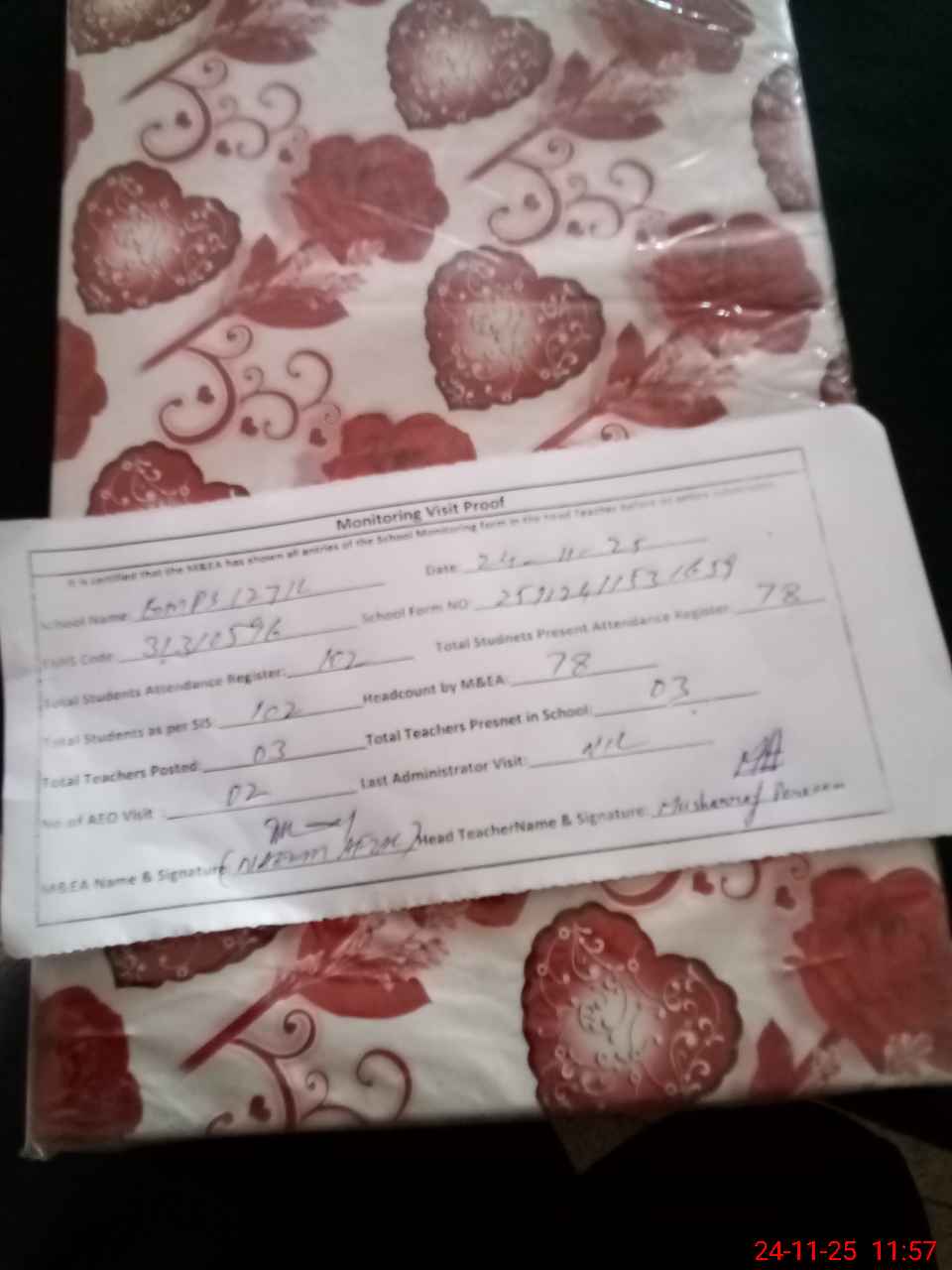 | Attendance Register | Head Teacher | MEA with School | Visit Proof |