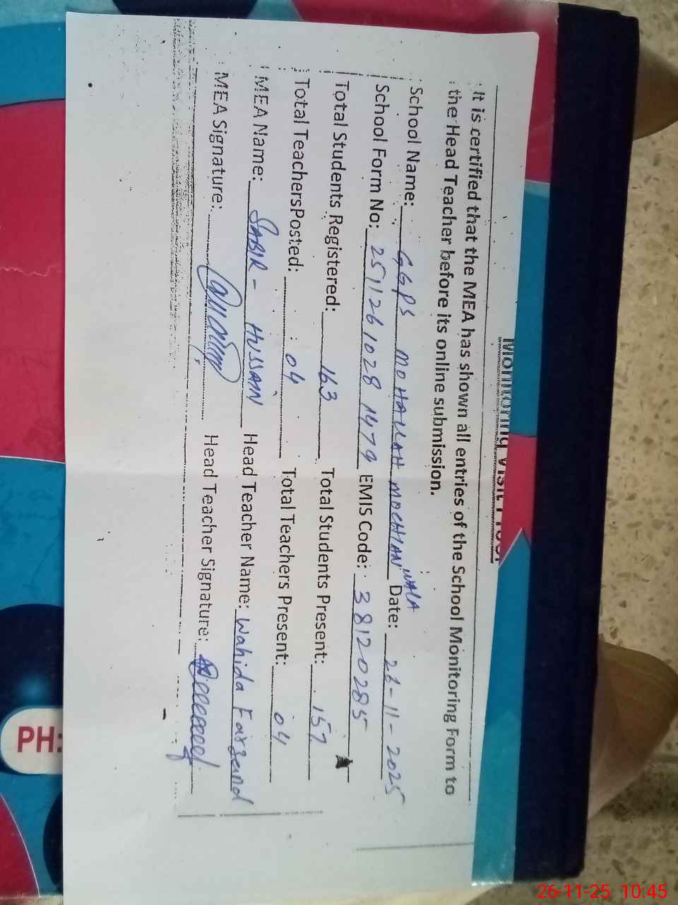 | EMIS Code: 38120285 | Name of School: GGPS MUHALLA MOCHAIN WALA | |||