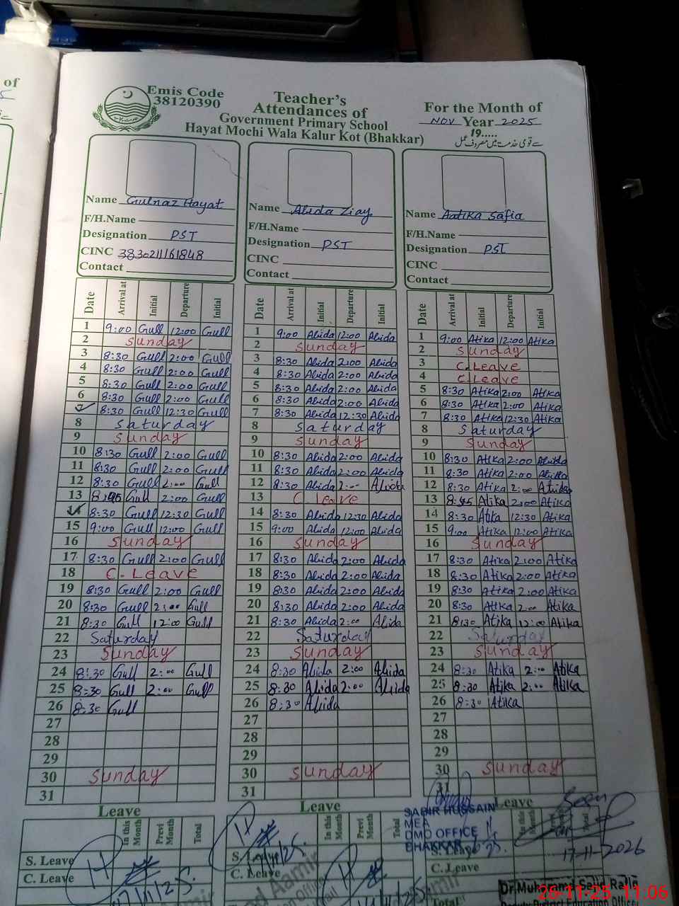 | Remarks (Use Separate Page if Required): last visit by Dy DEO MUHAMMAD SAJID RAFIQUE ON 17 11 2025 | |||||
