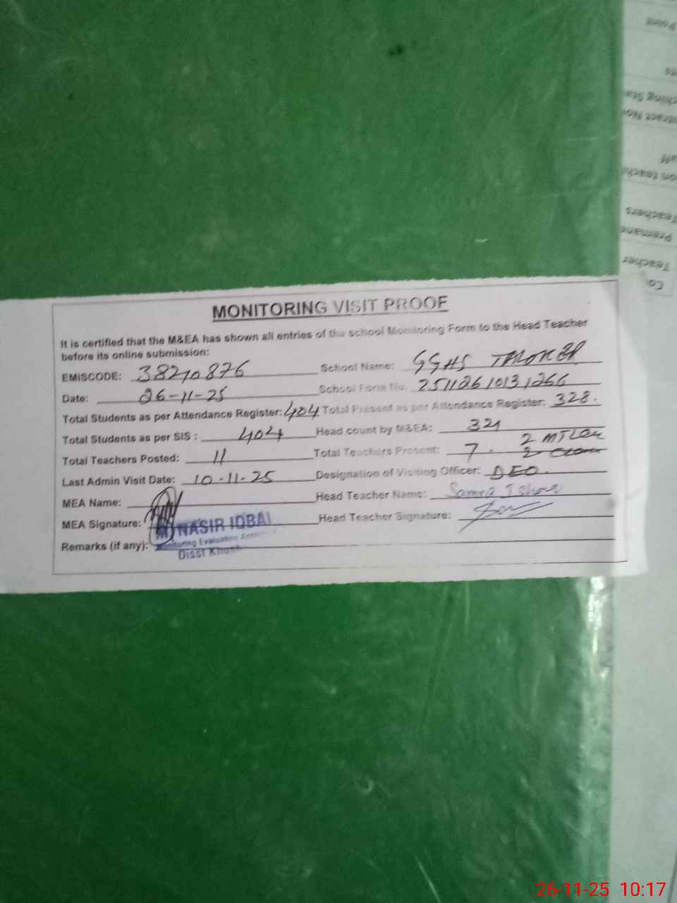 | EMIS Code: 38210876 | Name of School: GGHS TALOKAR | |||