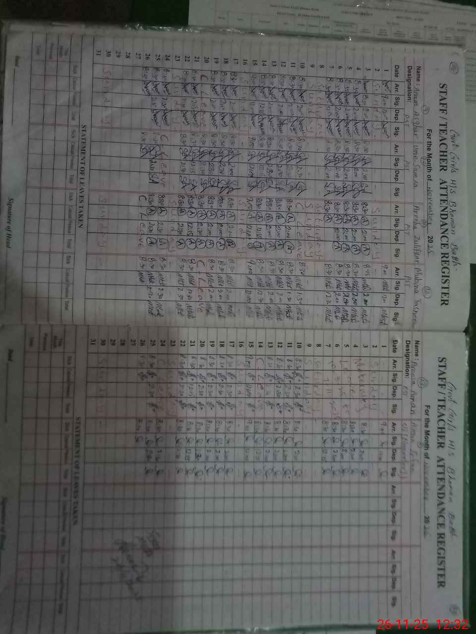 | Leave | Duty | Absent | Maternity | Medical | Ex- Pak |