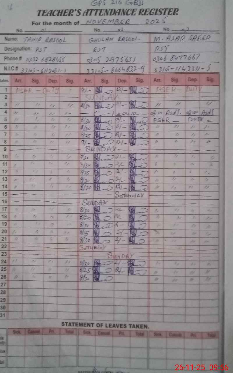 | EMIS Code: 33130135 | Name of School: GPS 216 GB II | |||